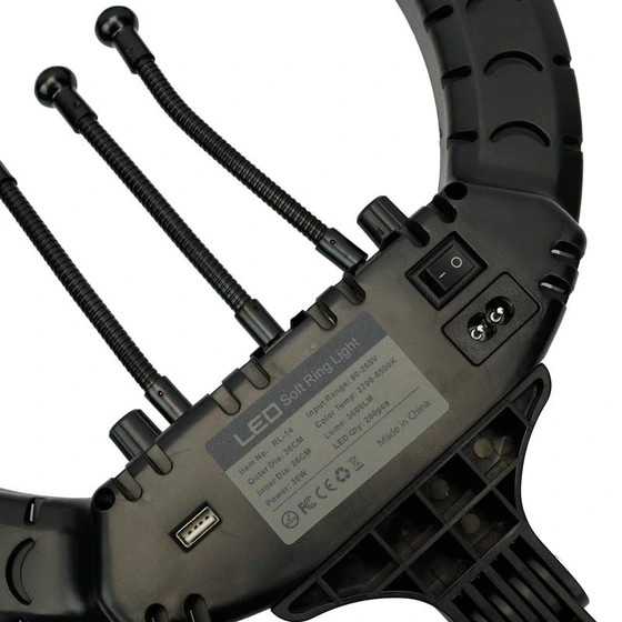 رینگ لایت RL-14 با قطر بیرونی ۳۶ سانتی متر و قطر داخلی ۲۶ سانتی متر با شدت نور مناسب خود . جهت انواع مصارف از قبیل : تولیدکنندگان محتوا ، سازنده های کلیپ معرفی محصول . عکاسی مدلینگ و عکاسی در آرایشگاه های مردانه و زنانه جهت عکس برداری از نمونه کارهای میکاپ ، تتو و کاشت ناخن و … مورد استفاده قرار می گیرد .✅
