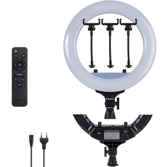 Ring Light همانطور که از نامش پیداست ، یک حلقه از نور است که سطح آن با ۲۸۰ عدد لامپ LED پوشانده شده است . که دارای ۳ حالت نور به رنگ های آفتابی ، مهتابی و ترکیبی از این دو نور است.✅