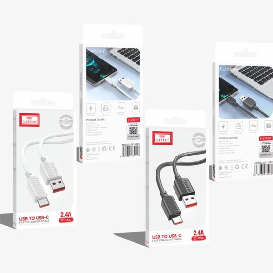 رنگ مشکی برند : ارلدام - EARLDOM نوع اتصال : USB2 Type A → UCB Type-C عملکرد : دیتا, شارژ سریع, شارژ عادی طول کابل : 1M آمپر خروجی کابل : 2.4A جنس روکش : بافت نایلونی اورجینال