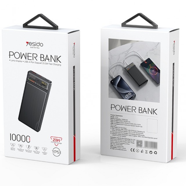 بدنه پاوربانک یسیدو YESIDO YP53 از جنس پلاستیک مقاوم ABS و پلی کربنات ساخته شده و در مقابل ضربه و فشار مقاوم است.