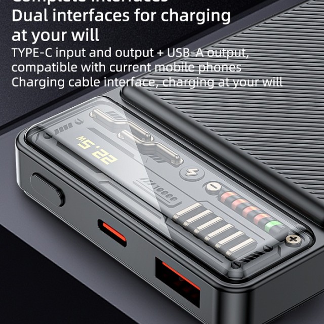 بر روی بدنه آن یک ردیف چراغ LED برای نمایش اطلاعات شارژ وجود دارد.