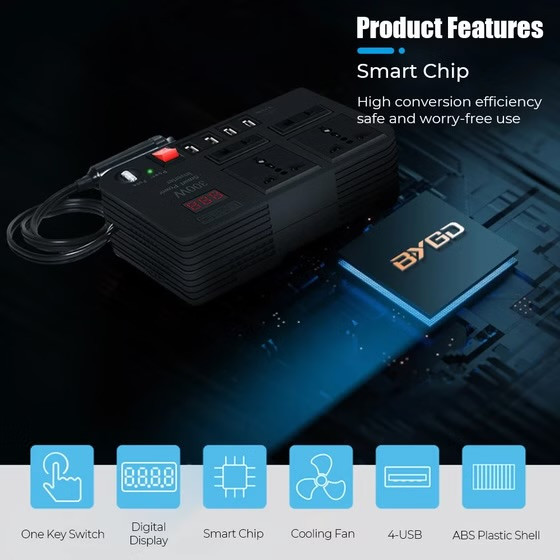 با تبدیل برق 12 ولت DC خودرو به برق 220 ولت AC، این اینورتر امکان استفاده از لوازمی مانند لپتاپ، تبلت، دوربین، و دیگر دستگاههای کوچک را در هر زمان و مکانی فراهم میآورد.