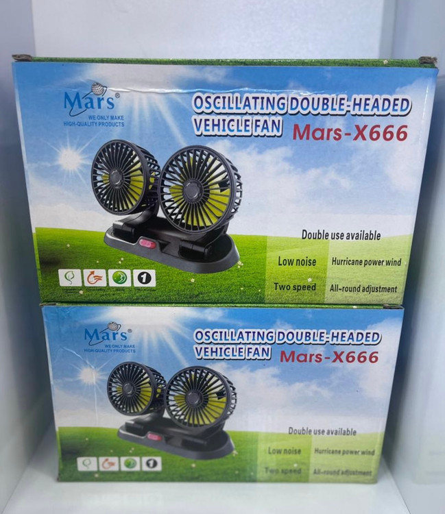 پنکه دو قلو فندکی خودرو یک وسیله کوچک، اما بسیار کاربردی و لازم، برای مواقعی که در داخل اتومبیل مشغول رانندگی و یا در حالت توقف احساس گرما کردید، بسیار کارآمد بوده و با وزن کمی که دارد براحتی قابل حمل می باشد. جنس بدنه پنکه از پلاستیک فشرده بسیار مقاوم است، و هر فن دارای 5 پره می باشد. قدرت این پنکه خودرو 10 وات و حداکثر جریان آن 1 آمپر می باشد. از ویژگیهای دیگر این پنکه قابلیت تنظیم ارتفاع و چرخش آن تا زاویه 360 درجه می باشد و با پایه ای که روی آن طراحی شده است می توانید براحتی روی داشبورد خودروی خود بدون اینکه فضای زیادی را آشغال کند بگذارید. پنکه دو قلو فندکی خودرو درای قدرت باد بسیار عالی در نوع خود بوده و با دکمه پاور 2 حالته میتوان از دو حالت باد کم سرعت و پر سرعت آن استفاده کنید. منبع تغذیه پنکه دو قلو فندکی خودرو جا فندکی خودرو بوده و بسیار کم صدا و دارای کیفیت ساخت بسیار بالایی است.